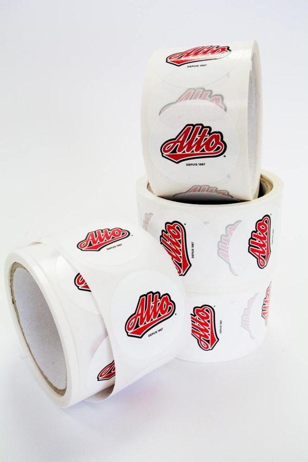 BOPP labels are made from plastic film material, and are unique through being both waterproof and resistant to the effects of UV. If you are looking to have your label protected while being eye-catching this is the perfect material for you. We offer custom cutout option as well as the standard square or circle shapes. Please be advised that the production time for each order is approximately 3-4 working days.